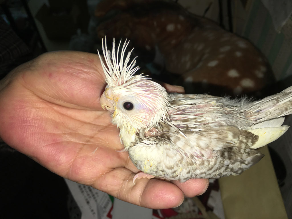 可愛いオカメインコのヒナが仲間入りしました。めずらしい体色でしょう。なかかなペットミッキンにも入りません。ただ今、挿し餌中です。